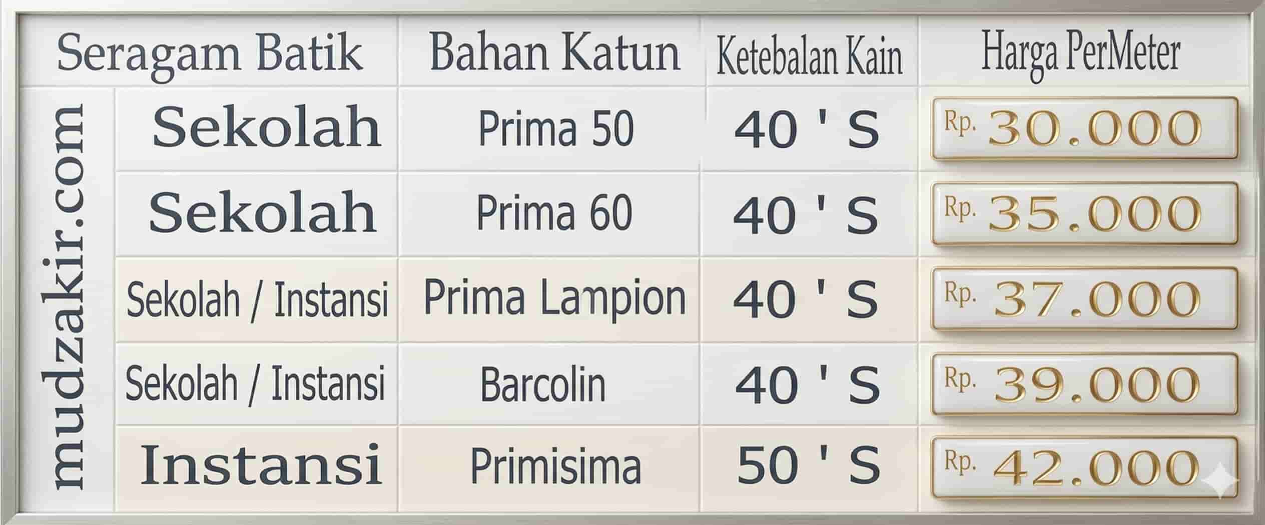 4. Primis poplin atau barkolin Rp 32.000,- per meter.